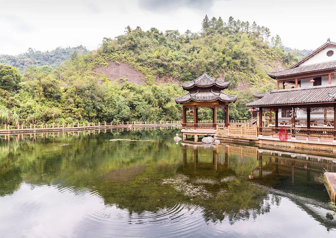 没有风的时候,水面就像一面干净到极致的镜子,倒映出周围的一切。凝望风雨桥和水面,早已你中有我、我中有你般和谐,奉献出了一幅美到极致的画面。