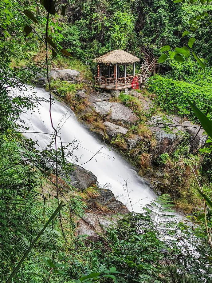 这五级瀑布直奔狂泻,最后到达碧绿如翡翠般的寿星潭。在宛如世外桃源的山间,水和山进行了一场谁也不输给谁的比赛,互相装饰、互相衬托,美得让人震撼。