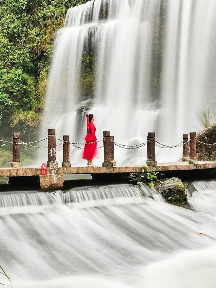 若是着一袭红衣,在瀑布下驻足眺望,拍出的照片颇有点武侠巨制的感觉了。