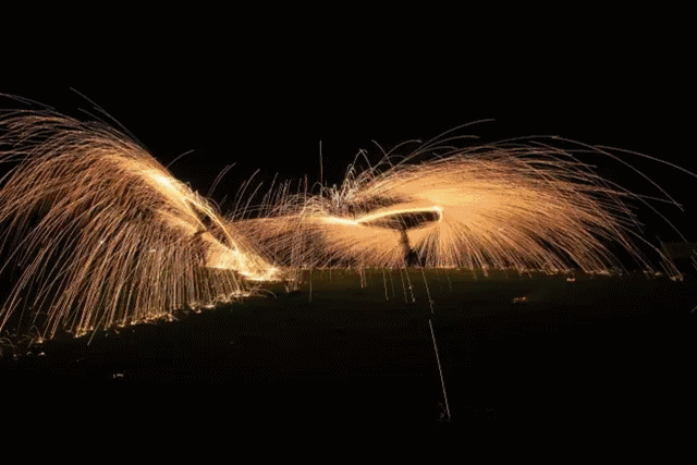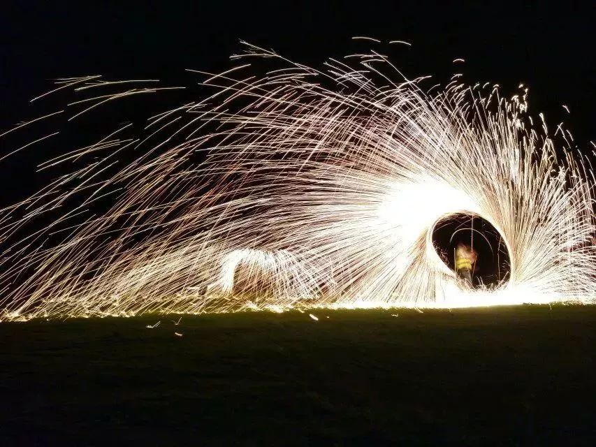 还不够刺激?再来点夜空中最酷炫的光影秀铺天盖地的火花瞬间洒满天空照亮每一个小朋友的笑脸一圈一圈在空中形成的光影轨道将气氛嗨到最顶端不要抑制,大声尖叫吧