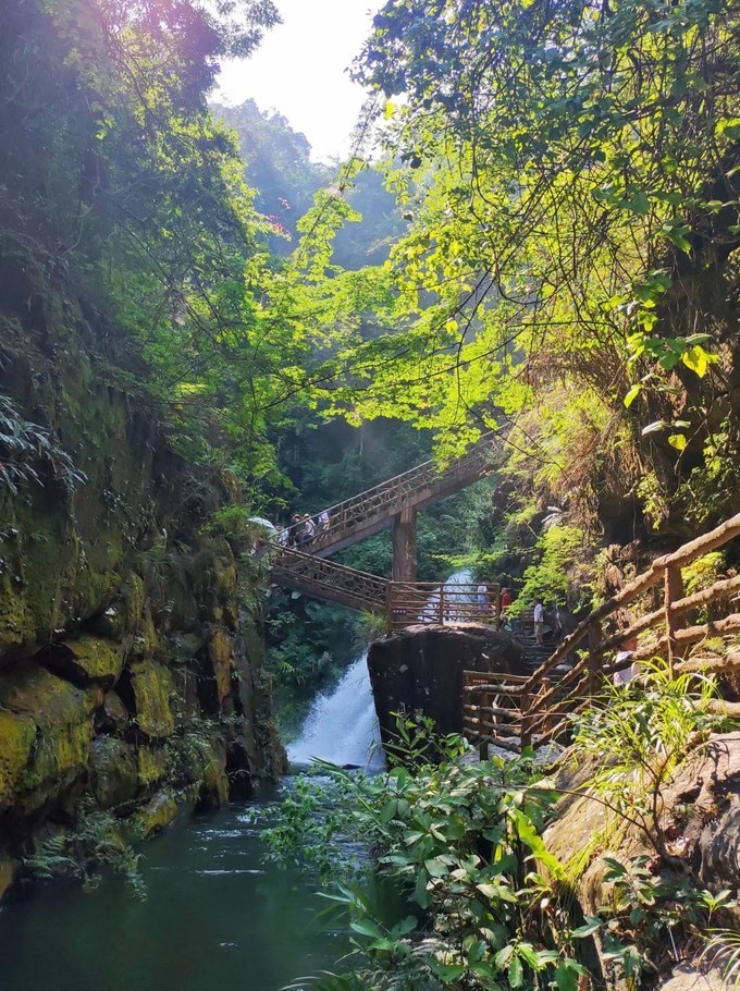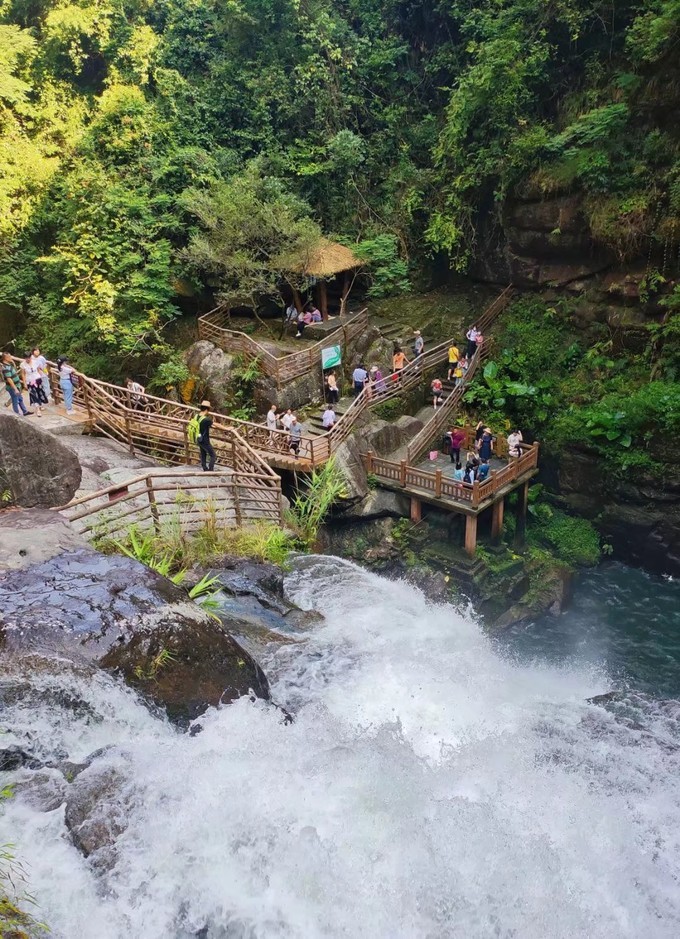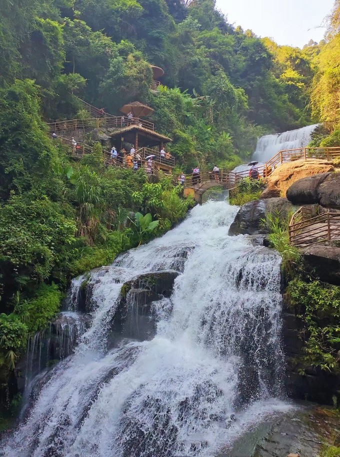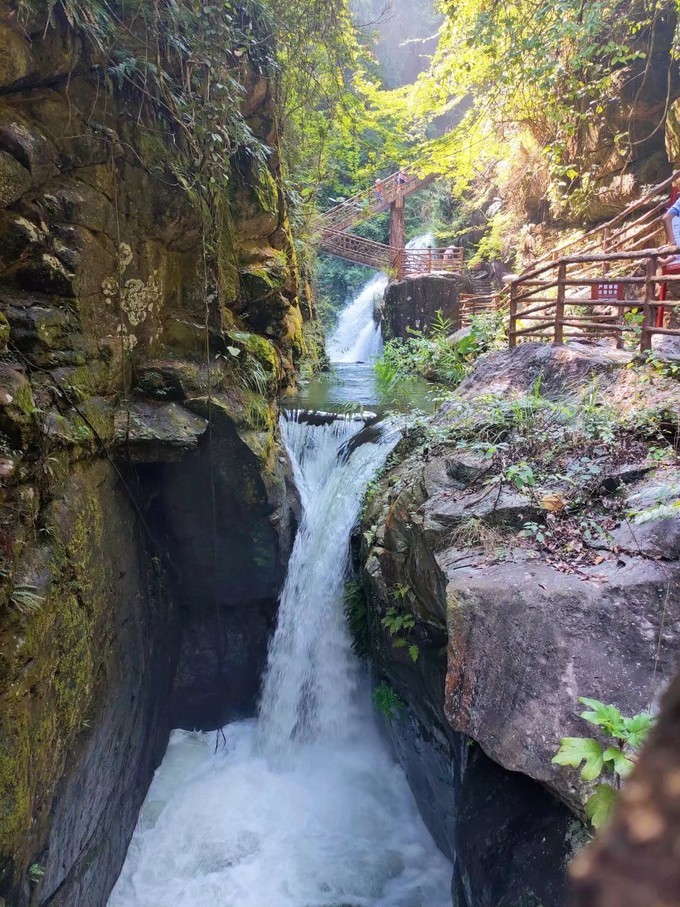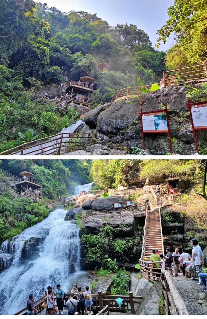 黄满寨瀑布群,可以说是揭西的招牌景点之一,被誉为“岭南第一瀑”,是国家AAAA级景区、省级地质公园创建单位、 广东 省国民休闲旅游示范单位、 揭阳 美丽10佳景区之一, 广东 省十佳环境好评景区,是 揭西县 最亮丽的生态旅游名片。 省内去过跟这个比较类似的瀑布群,是 白水 寨风景区,真不是因为是自己家乡的景点而偏袒黄满寨,论风景以及游园感受,黄满寨瀑布的壮观度以及景色的秀丽度确实是高一些的呢~ 黄满寨瀑布自上而下共分五级,落差300多米: 一级:飞虹瀑布,宽82米、落差56米,被誉为“岭南第一瀑” 二级:银河崆瀑布 三级:落九天瀑布,落差120多米的 四级:三叠谷瀑布;五级是似万颗珍珠倒在斗里的斗方崆瀑布。 门票:85元/人(美团/携程皆可预定) 导航:黄满寨瀑布 交通:建议自驾开车前往,原本在京溪园中医院旁边是有接驳巴士上山的,现已停运很久了,所以只能打车或是自己开车。 游玩时长:建议3-4小时 温馨提示:穿舒适的衣服鞋子,运动型最佳,因为需要走的路比较多,全程都是亲水路线,就算是夏天也不会觉得热。