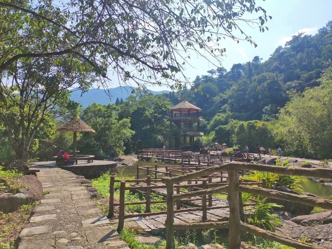说起粗坑村这个地方,大家一定都很陌生,但是说起岭南第一瀑:揭西黄满寨瀑布,可能大家就熟悉了,而粗坑村就是在黄满寨瀑布下面的一个村庄,粗坑这个地名从字眼上联想这个地方确实是粗糙了些,殊不知,这还是个风景如画的地方。粗坑与黄满寨离得近,慢慢的也发展起旅游业,景区内有着200多年历史的 苏州 园林艺术民居,同时结合还继承了客家人围拢屋的传统,长廊、庭院、楼台、民居依山傍水而建,山清水秀,蓝天白云是粗坑的标志景象🌤 导航: 揭西县 京溪园镇粗坑村 门票:免费