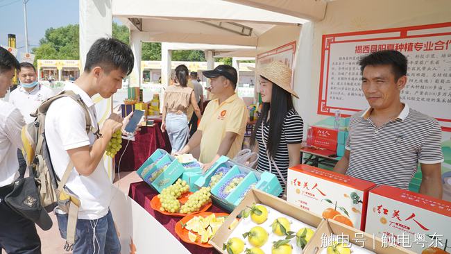 现场的农副产品电商带货区,通过线上线上双结合的方式,让揭阳农作物及农副产品有了走出揭阳、走出广东的机会,将乡村振兴事业做到线上线下同步推动,田里田外同时进行。