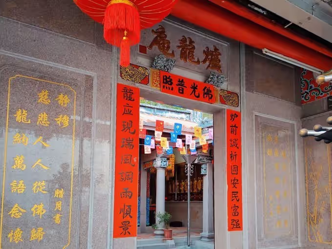 有一颗百年古榕树屹立在堂右侧 路过的时候 一眼就会被它的高大雄壮吸引住 给炉龙庵增添了几分古色古香