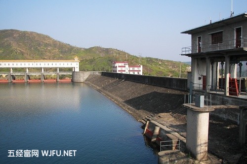 离上坝十余里的龙颈口,两岸高山狭峙,左边彩塔山,有梯田痕迹,望之如塔,下坝即建于此,坝高四十三公尺,有水从一侧山洞轰然奔出。坝外大楼为发电站,装机三台,共九千千瓦。电站周围,电竿如林,电线如网,蔚为奇观。