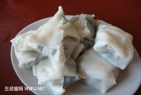 广东省揭西县客家地带的一种风味小吃,把大米做成米浆,然后用蒸汽蒸成一张类似河粉一样的薄膜,做法跟炊肠粉一样。然后放些猪肉豆干、咸菜、南瓜等做馅,再把这些馅四个角包起来。